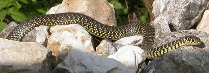 Just to cap off our reptile day, in swimming pool we found the fattest black and yellow salamanda I have yet seen. How many young does a grass snake have and do they travel far? Thanks for all your help I am learning lots about our reptile neigbours. |