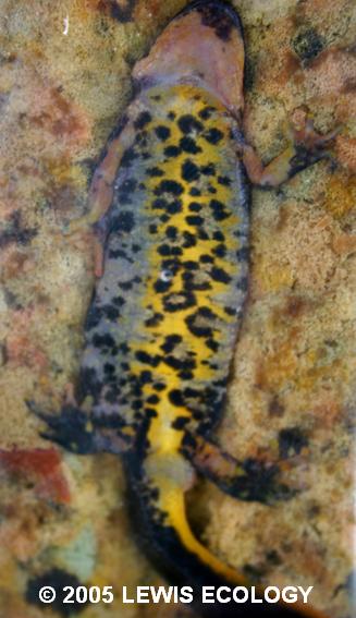 Posted: 14 Jun 2005 Just thought this might be of interest. Whilst surveying ponds in Redditch recently I came across this bizarre looking female Crested, which really surprised me. She had the most wonderful pigmentation on her belly and flanks. I donĘt know if you people have seen many like it but she also had nice spots on her belly like leopards with a circular outer and a coloured middleą Quite nice really but never seen another like herą Brett.