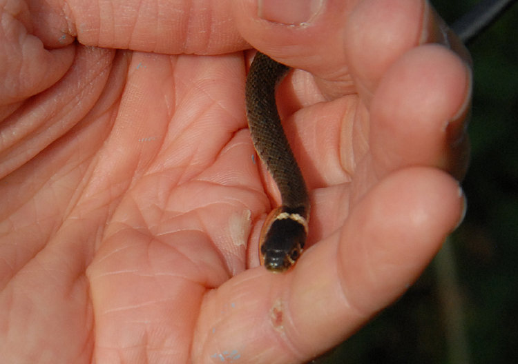 Posted: 11 Aug 2009 Hi Chris, I've found very small grass snakes at unexpected times of the year. e.g. one weighing 4 g in May 07 and another weighing 3 g in May 08. This is pretty much the weight of hatchlings. This year I found another ten tiny grass snakes in June. I didn't weigh these, but they looked hatchling size. I assume that these are simply babies that have got off to a bad start in life and did not manage to grow at all between hatching and the following spring. Given the cool summers of 2007 and 2008 it doesn't seem unreasonable to think that hatchlings might be appearing late in the year and going into hibernation without feeding and some of them still not managing to put on weight the following spring. John Baker John Baker |