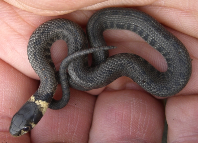 Posted: 14 Aug 2010 Great find - well done; your compost heap is evidently grass snake friendly. I'd advise you to rebury them at the same depth in what remains of the heap. They shouldn't be far off hatching now, I reckon. You want some warmth (use a thermometer to probe the temp at various depths before reburying them ?) but not too much, of course. If you have a single clutch of 50 that would be pretty rare, but several females often lay together, which can lead to the appearance of a singly egg mass (rather like clumps of frogspawn stick together). Once you are sure the eggs have hatched (end of Sept/ early Oct to be sure) then dig up the eggs and see if you can make out separate clutches or just one big mass of eggs. As far as watching the eggs goes, I don't know how you'd do this, or that you'd see much of interest, until the first tiny head appears from the egg. If you put some matting or thin board on the heap, the hatchlings will be more evident as they enjoy the warmth of these objects Cheers Will |