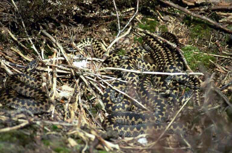 Posted: 22 Apr 2004 Just thought i would post one of my slides from a few weeks back. There were 9 Vipera berus in this hibernaculum, and 23 were seen in less than an hour. Nearly all were pre-sloughed and most had blue eyes. Also saw quite a few Podarcis muralis at the Boscombe locality, along with few basking Anguis, and Natrix. Matt ![]() Matthew Wilson |