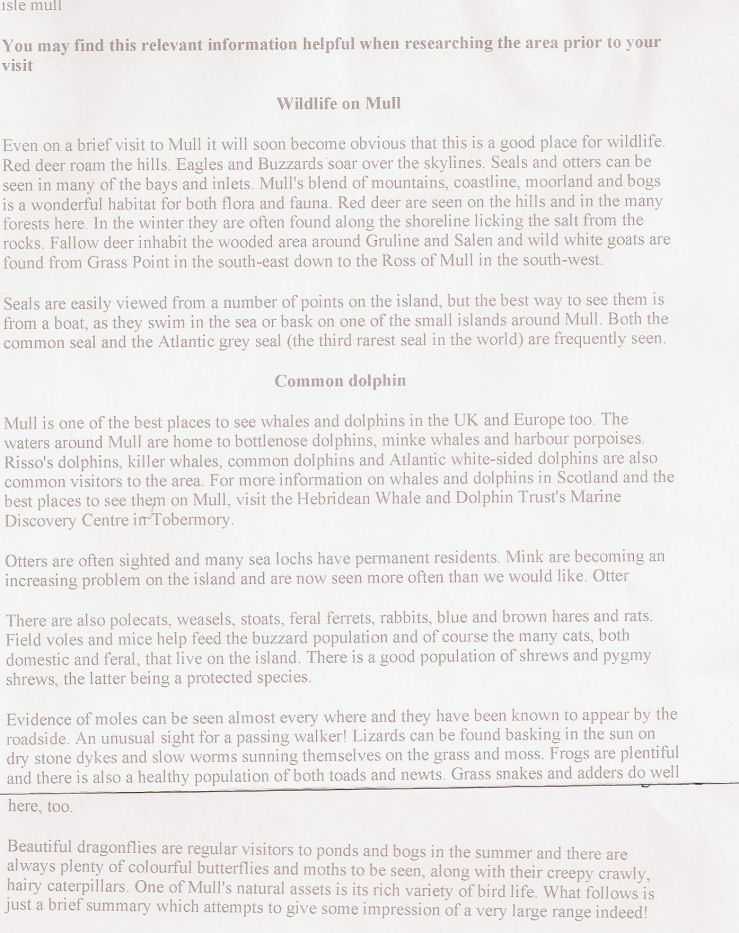 Posted: 28 May 2008 hey Gemma, I just found an advert for a house in Scotland on the internet! Reading down the page, Grassies thrive on Mull! As soon as I print off the page, I'll post it on her for you to read. Mull eh? RobV |