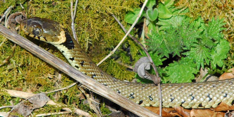Posted: 09 Apr 2009 Thanks to Paul for a great day out and looking through pictures from the day I noticed this Grass snake, hope the marks are not related to the swollen eye of the previous snake