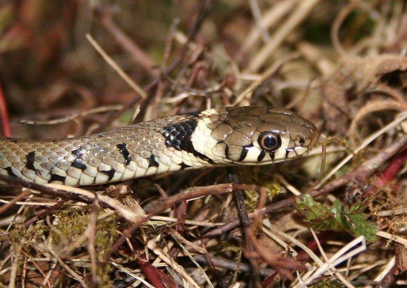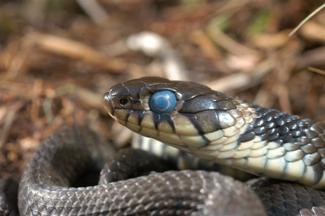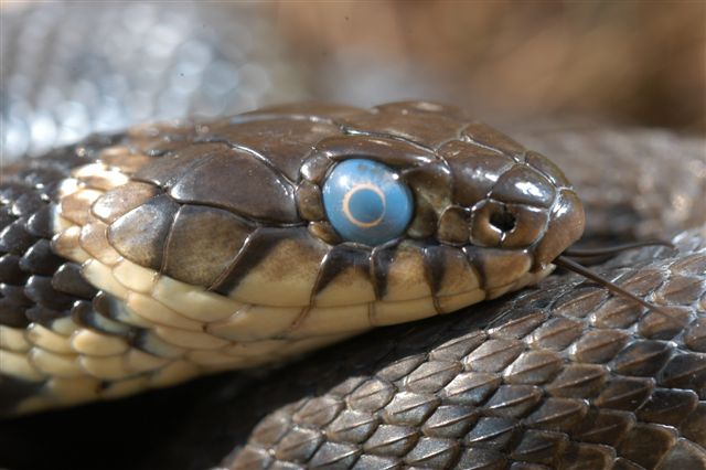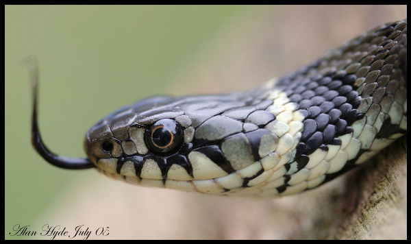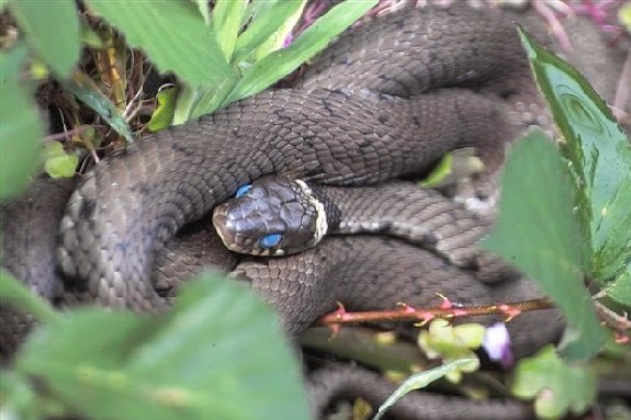 Posted: 31 Aug 2006 Another snake doing its mime impression of Frank Sinatra ie "Ol' Blue Eyes". Picture was taken by Martin Roome, who had never seen such blue eyes before. One of eight seen close together by him at his best spot in Derbyshire last weekend. They seem to be sheltering in a gap in a large masonry structure over a river and using a narrow 4 inch wide ledge in the stone work to reach solid ground above the river bank. Derbyshire Amphibian & Reptile Group www.derbyshirearg.co.uk |