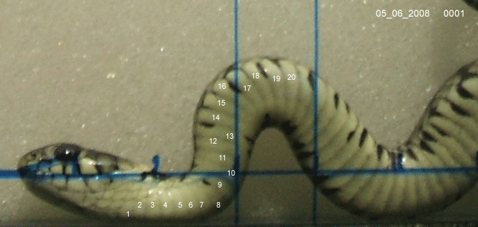 Posted: 06 Jun 2008 Gemma, can I ask, when are you hoping to recapture to recheck the ventrals? next month, next year? those patterns will definitely warp as they grow, they cannot possibly remain the same. How will you be sure that they will be the same snake? If they are completely different, it could give a general indication, I grant you, but categorically, nah, I don't reckon. Besides which, don't you think all that partial crushing and flashing lights is a good idea????