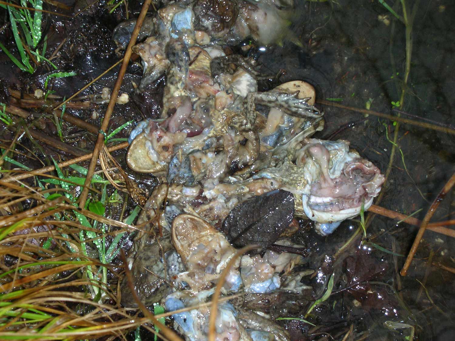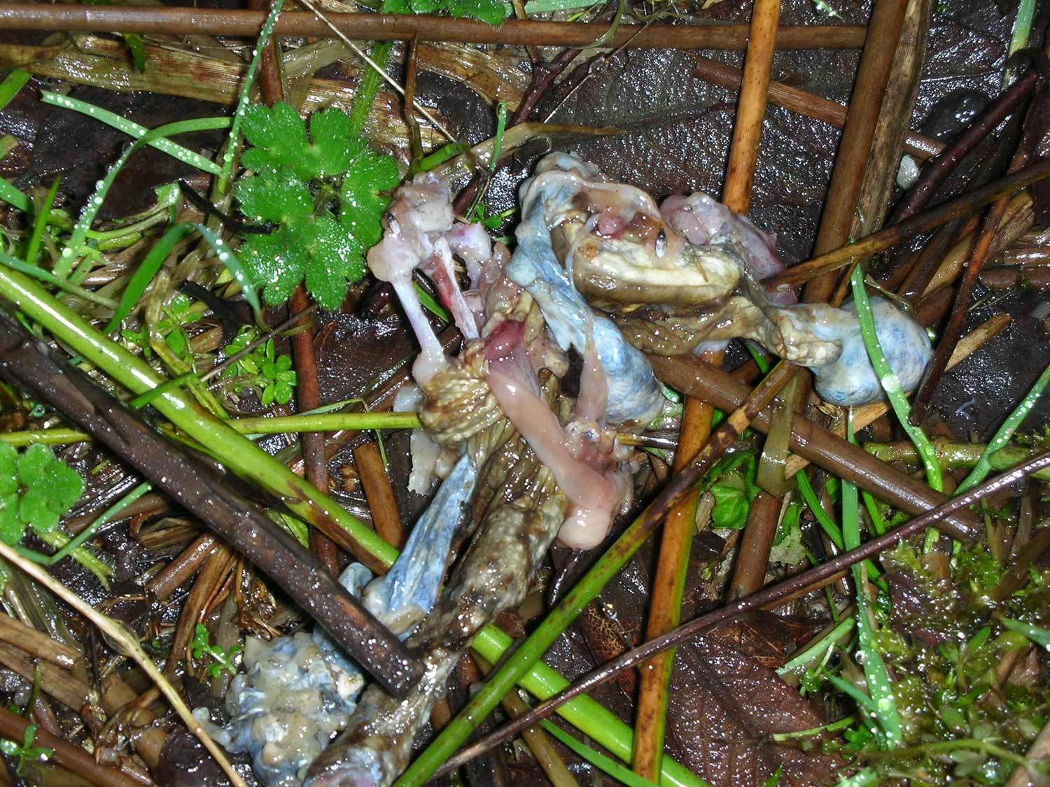 This looks very similar to the previous photo posting, there were some tunnels about 7 inches diameter in the vegetation going into the water, no signs of otter and I would have thought to sheltered for Heron or Egret. Has anyone got positive proof that the previous post was Mink kill as we think this may be, have been unable to find any back up evidence on a web search so far. Perhaps members may have other views that they could put forward. British Herpetological Society Librarian and member of B.H.S Conservation Committee. Self employed Herpetological Consultant and Field Worker. |