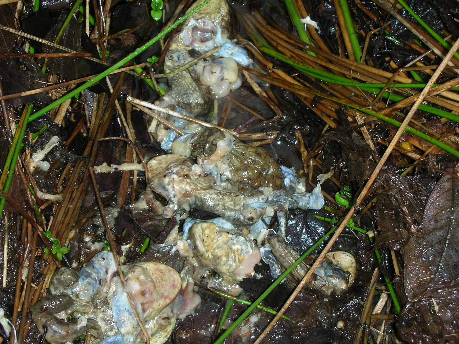 Posted: 07 Apr 2007 Visited a local pond last night plenty of toad activity, chirps and whatnot(East Yorkshire). Unfortunately I stumbled onto what appeared to be a mass slaughter of toads in varying degrees of decomposition. The toads were in a small area, some were placed on top of each other. Has any one else ever witnessed a similar crime. My hunch is that Herons might be the perpetrators of this crime. Will try to post some photographs. |