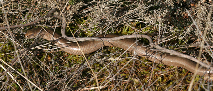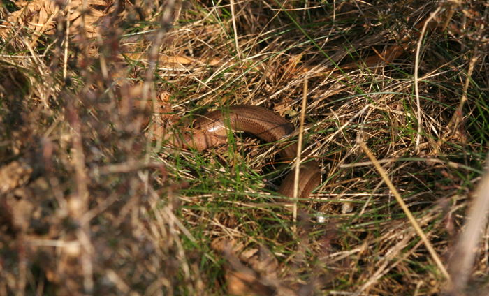 Posted: 18 Mar 2006 Had a wander about the heaths this morning, but too cold and cloudy. Luckily the weather cleared up a bit late afternoon, and I strolled across Hankley Common, and caught sight of a Slow worm basking openly, just a glimpse of scales in the sunlight. My first Slow-worm of the season...and not even under a tin ! Made my day