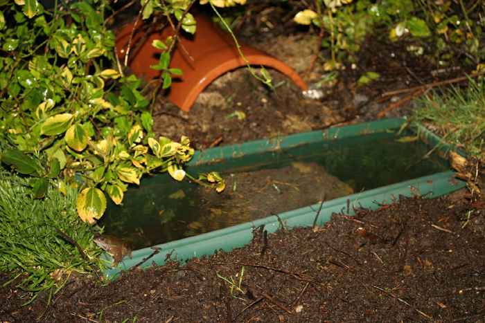 Posted: 03 Mar 2008 Baby Sue, An easy short-term measure is to put a small plastic 'planter' at the edge of the garden. make sure it is close to cover, like a hedge, so the frogs don't have to walk across the lawn to get to it (cats & foxes etc.). The one pictured is only about 2-feet long, and had frogs and toads using it within a week ! Takes 10 minutes to dig a small hole and drop it in. Add a brick or a breeze-block as a small island :P I once had 4 frogs and 2 toads in it at the same time! ![]() Can you spot the frog?? Steve Langham - Chairman