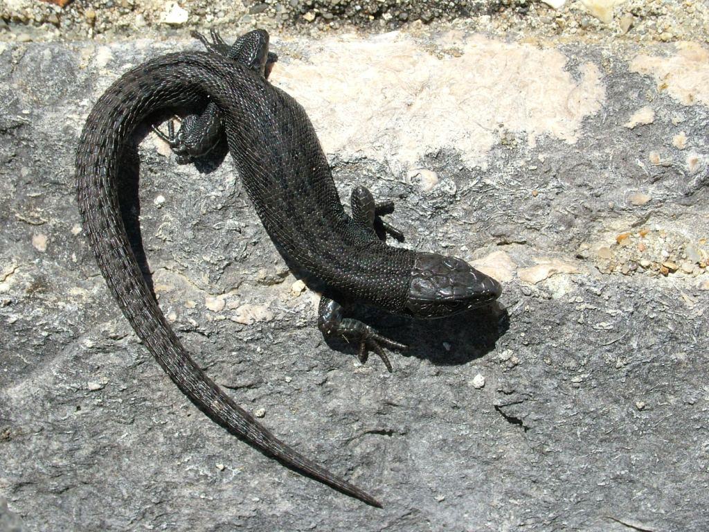 Posted: 15 Mar 2008 Hello Rob Here's a pic of a similarly melanistic common lizard (male) from Boscombe in Bournemouth. Melanistic individuals can be found at high frequencies in populations of lizards and adders, especially in the far north of their range where the benefits to thermoregulation outweigh increased risk of predation due to conspicuousness. I really like the idea that, if adders (mainly hunting using non-visual cues) are the main predators, speedy black lizards might be at an advantage compared with more cryptic ones, but I suspect birds might then sway the population in favour of the typical forms - so maybe there is a balance between melanistic and typical colours ? Cheers Will ![]() |